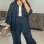 Ensemble effet lin composé d'une chemise polyvalente et d'un pantalon ample.