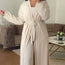 Ensemble kimono long et pantalon évasé, confectionné dans une matière légère. Polyvalent, il peut être porté ouvert ou fermé selon vos préférences. Un choix confortable et élégant pour diverses occasions.