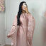 Abaya longue avec ajustement à l'arrière grâce à un lacet, ornée d'une longue cape à l'arrière transparente. Un mariage de style et de détails raffinés pour une allure élégante.