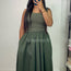 Robe mi-longue se distingue par son haut débardeur en jersey côtelé et sa jupe évasée en tissu léger. Dotée de bretelles, d'une encolure dégagée et de poches pratiques, elle allie confort et style.
