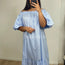 Robe longue fluide et évasée avec manches courtes ballon et col bateau. Le tissu léger offre confort et liberté de mouvement. Parfaite pour les journées chaudes et les occasions spéciales.