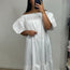 Robe longue fluide et évasée avec manches courtes ballon et col bateau. Le tissu léger offre confort et liberté de mouvement. Parfaite pour les journées chaudes et les occasions spéciales. Légèrement transparente