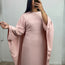 Abaya longue avec ajustement à l'arrière grâce à un lacet, ornée d'une longue cape à l'arrière. Un mariage de style et de détails raffinés pour une allure élégante.