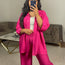 Ensemble effet lin composé d'une chemise polyvalente et d'un pantalon ample.